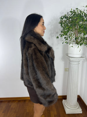 Giacca in ecopelliccia color marrone scuro, dal finish morbido e compatto.